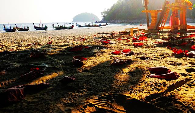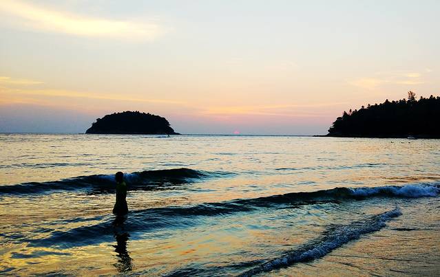 摩托车到卡伦海滩也就20分钟,比芭东海滩干净很多,是普吉三大海滩当中人最少的,安静度和私密度最高的海滩。但是这里海浪很大,千万不要在插着红旗的危险区域下水游泳。这里的游客多数是老外,反正我没见到其他中国游客。如果你不爱活动喜欢躺在沙滩日光浴的话,在这躺着晒太阳,干净又惬意,卡伦海滩是个最好的选择。像我这种怕晒太阳,水性又不好的人不适合在这个海滩玩耍。