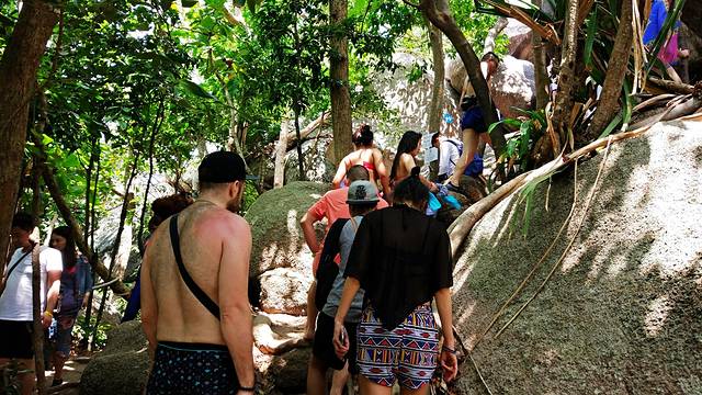 天气太热,徒步上观景台一路上来很不容易,大多数人是骑摩托上去,问了几个人,摩托是镇上租过来的的,Yanui Beach这边很难租到摩托车只好作罢。