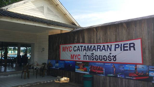 早晨8:00巴士会到各个酒店接人陆续送到码头,码头上提供简单的免费饮料和点心,在这里提前换好泳衣,工作人员会做一个简单的一日游行程介绍,讲一些注意事项。9:30从码头出发,前往攀牙湾。看来中国人来这里潜水度假的不少,码头上房屋长短租赁的房屋出租广告竟然有中文的。
