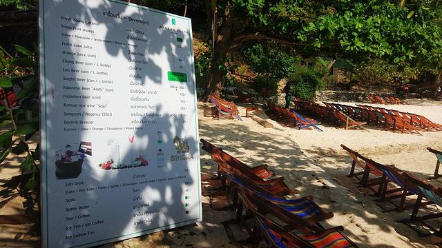 岛上沙滩椅是免费的,卫生间和淡水冲洗也是免费的。