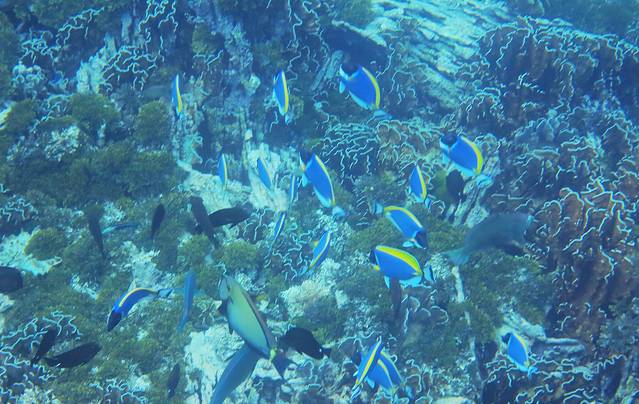 第二个潜点在5号和6号岛之间,这次潜水时间较长,大约有45分钟。这里的水下看点和8号岛的第一个潜点差不多,浮潜的人稍微少一点。近距离欣赏美丽的珊瑚,五颜六色的热带鱼从身边游过,简直就是一个水下天堂。