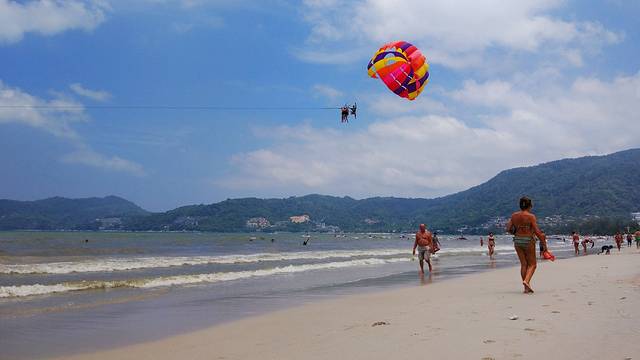 原本安静的卡塔海滩现在也有了娱乐活动,目前只有拖曳滑翔伞,不知道日后会不会有其他项目陆续跟进。