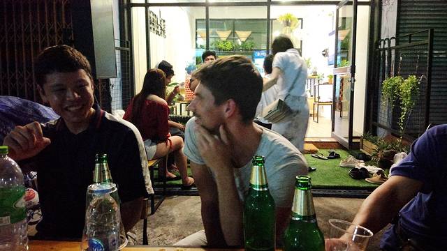 晚上回到Hotel旅舍的小妹告诉我晚上不要去吃晚餐了,有个party开业免费来参加。问了一下才知道原来是为我住的这家旅舍的第一家分店正式开业举办的开业party,而我这两天住的就是今天正式开业的新分店,难怪我一直可以一床位的价格住单间呢。