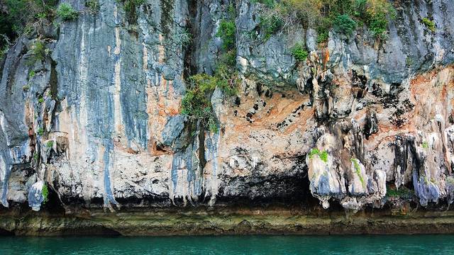 抵达盘拿岛,换乘双人皮划艇,皮划艇上配有专业船员,带你缓缓划入蜿蜒的洞穴中,游走于被海水冲刷过的各种神奇的山洞之中,这些山洞高低错落、宽窄各异,奇岩怪石围绕有如九曲十八弯,皮划艇穿梭在一个个溶洞、海湾之间,刚从一个溶洞出来,瞬间又划到了一个安静的内湾之中,两边悬崖上长满了苍翠的植物。给人一会儿疑无路,一会儿柳暗花明的特别感受。