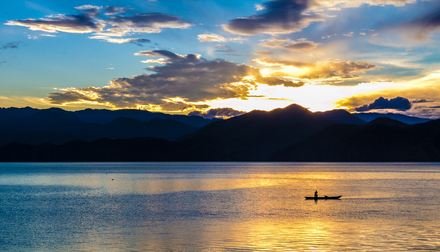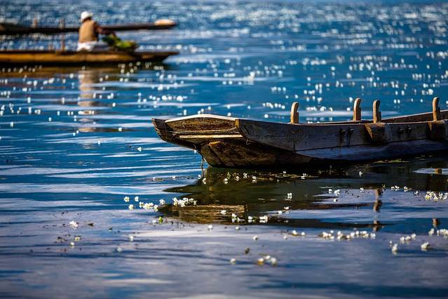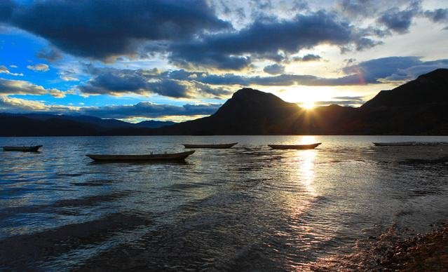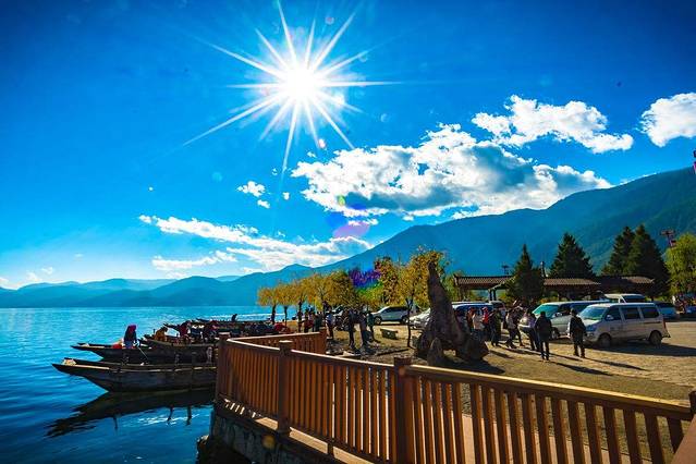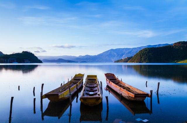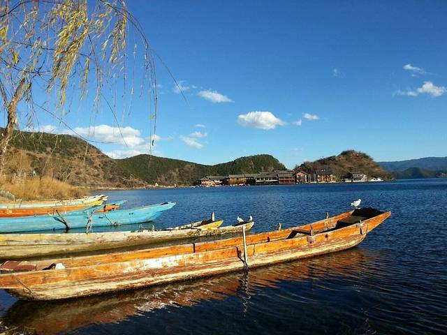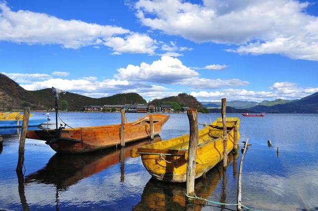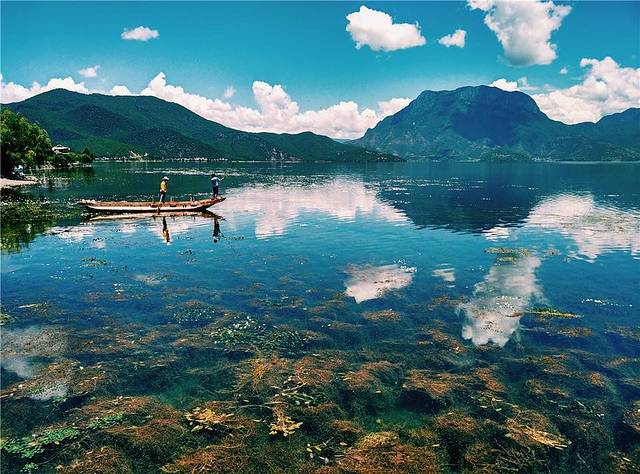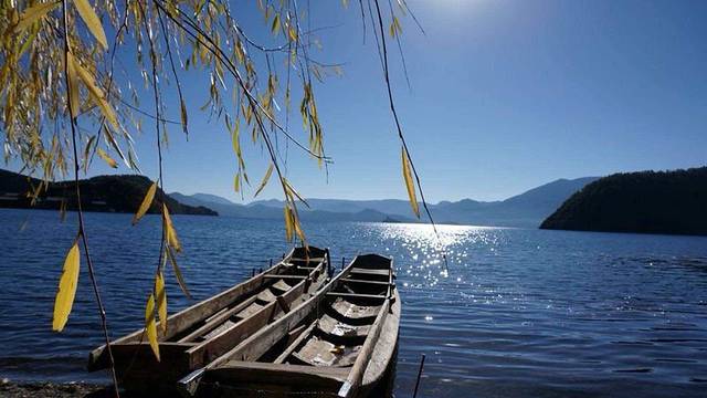 但白天湖面涟漪,湖水见底透彻,依山驾一扁舟,夜晚客栈门口披好你的小被裹,星辰铺满天...