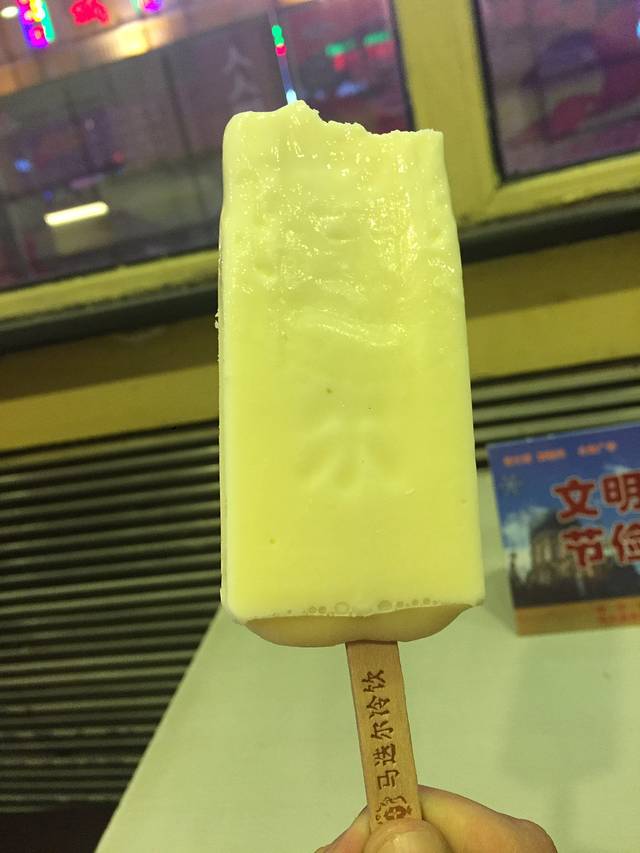 南方的冬天很少吃冰棍,反而在寒冷的哈尔滨冬天吃冰棍的人随处可见,我们也来一个马迭尔,不觉得冷。酷酷哒