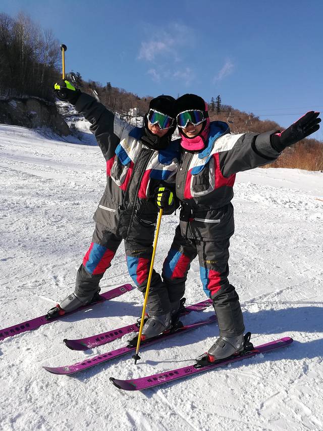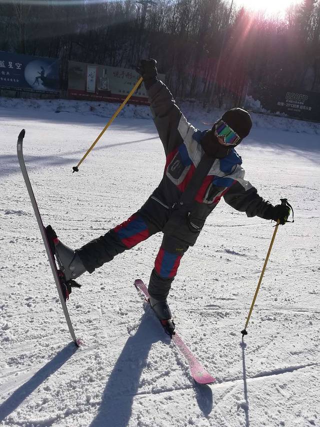 一下子我就学会啦!滑雪太好玩了!手机冻住了,教练教我摆pose还帮我拍照片后来传给我的,很难得的照片。