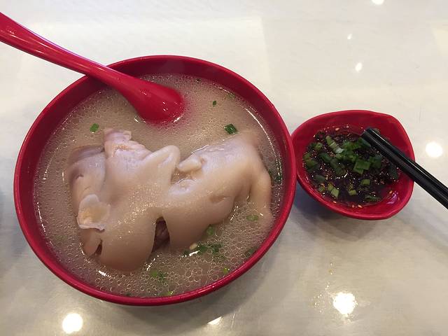 游客基本都是慕名而来,也有很多本地人在这家吃。蹄花的味道确实很棒,汤的浓度适宜,猪蹄炖的很烂,再配上一碟沾汁,很赞!