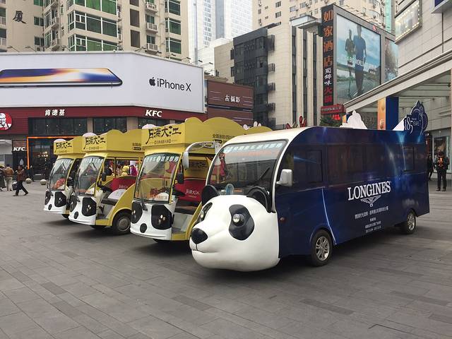 到底是到了熊猫之乡,走在路上随处可以看到熊猫标志,游览车、雕塑摆件、小朋友的头饰,统统都有熊猫🐼。