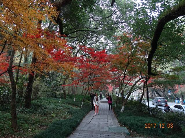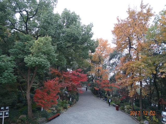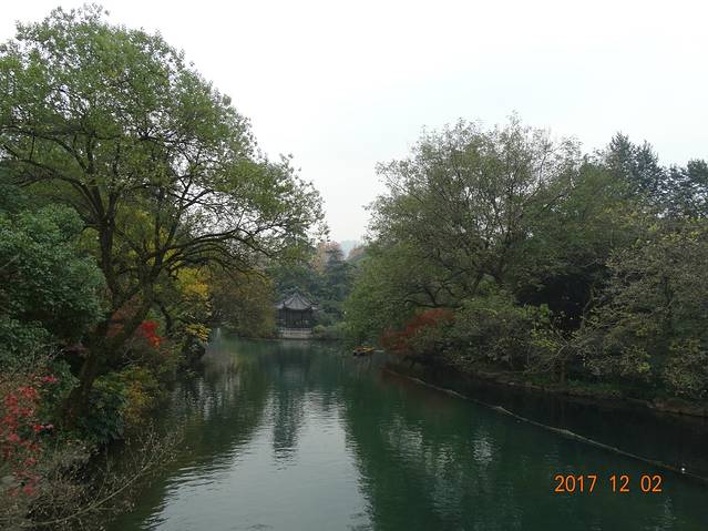 从这里左边的那条路进去慢慢走就能到花港观鱼啦