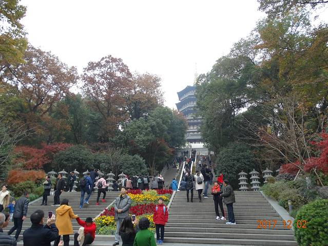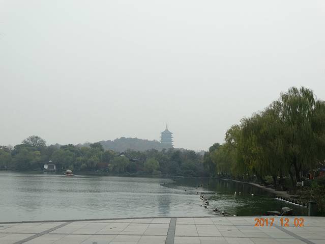 出了花港观鱼就到了苏堤上面,顺便记下了游船的路线。顺着走差不多十几分钟就能走到雷峰塔。