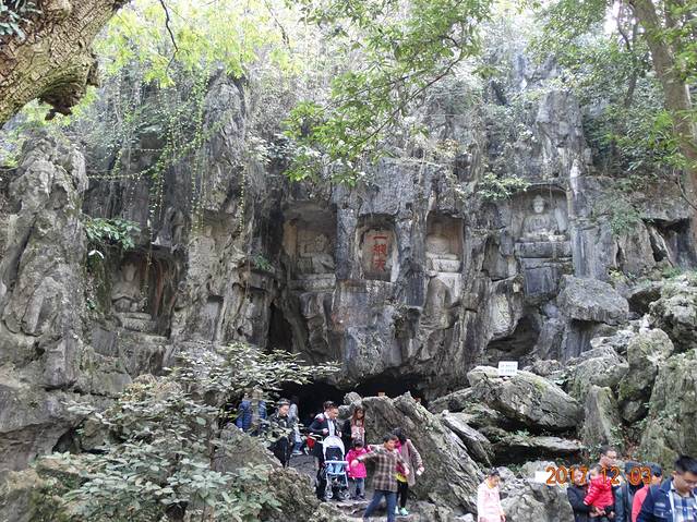 飞来峰和灵隐寺是在一起的,先在门口买票,40的飞来峰,然后就可以进入入口,逛着逛着就可以去爬飞来峰了,跟着人流走基本不会走错。我比较恐高。。。所以爬山的时候吓得不行。。。