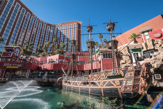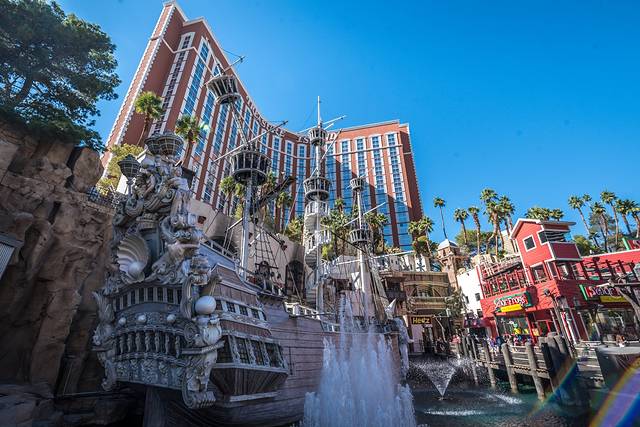 以童话故事“金银岛”打造的海盗主题酒店,但非常遗憾,酒店大门精彩的免费海盗秀已经因为设施维修暂时被取消。