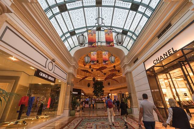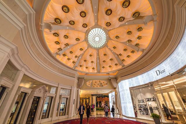 2005年才竣工的永利是Strip大街上最为豪华的一家,也是造价最高的一家,房价常年维持在300美金以上,步入酒店,则是满目奢华,各种奢侈品店玲琅满目,恭候各位赌客光临。