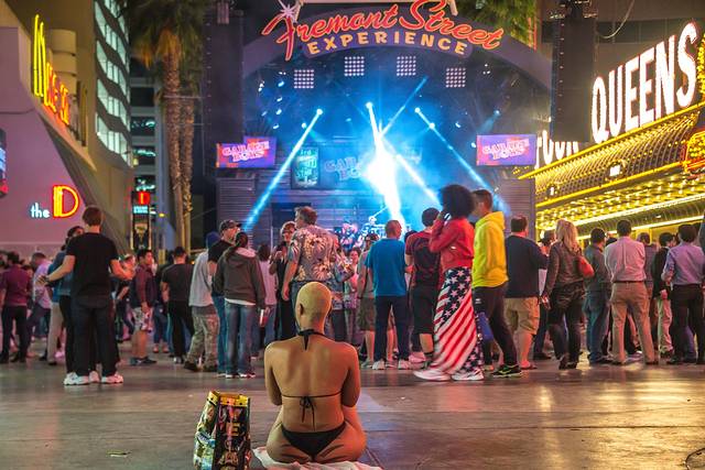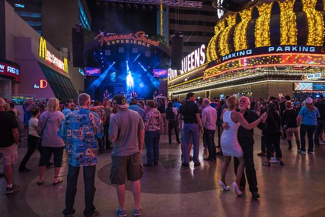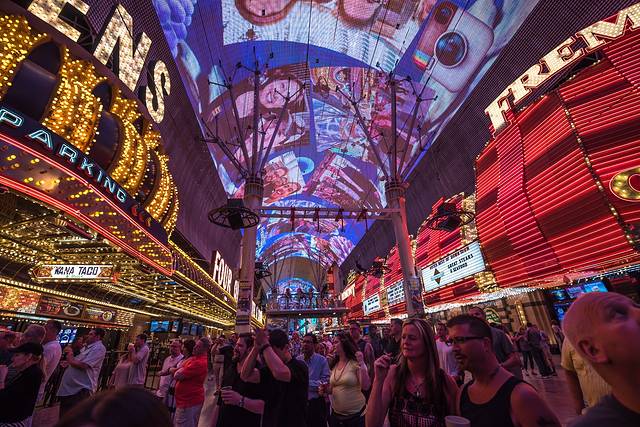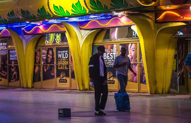 看点:拉斯维加斯的起源 Fremont Street; 每晚都有的摇滚演唱会;街头艺人;天幕灯光秀;拉斯维加斯第一家赌场 Golden Gate