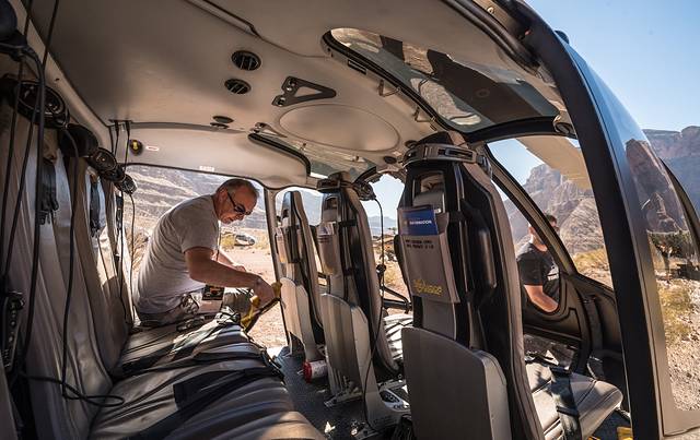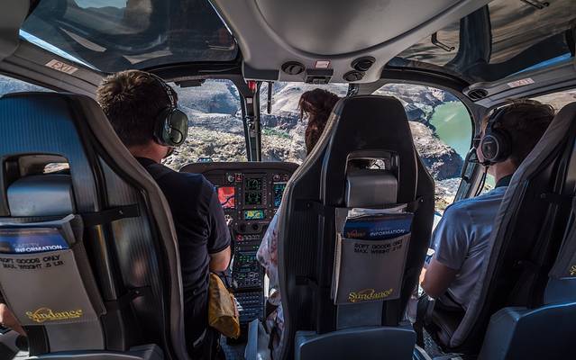 该公司大约共有二十多艘直升机,同时前往大峡谷的也有十二艘,在空中一线排开,非常气派