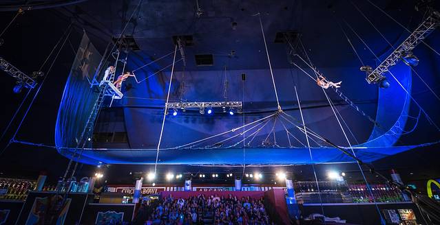 这个是号称制作经费最高的太阳马戏,绝对的大制作。故事讲述的是一对双胞胎兄弟经历艰难险阻去完成自己天命的故事。整出秀融合很多武术元素,凌空旋转的舞台是最大的看点。相比于O Show, KA的风格更加偏神秘一点,带有浓浓的古异域风情。此外剧场内的装修本身也是一大看点,华丽无比,在很多KA的海报上都能看到其身影。