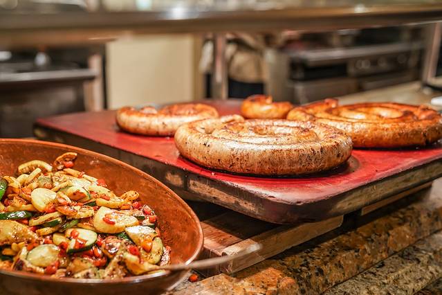 除了海鲜,德式香肠、猪蹄,美式火鸡,中式点心和各种甜点也都值得期待。