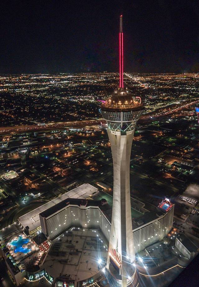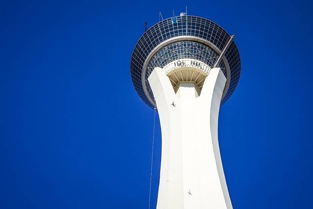在Srtip大道北部高耸的243米高的观景塔是酒店的亮点,也是全拉斯维加斯最高的建筑,塔上有多个临空的大项旋转机动项目,因为离地距离够高,所以刺激度也比地面的高上不少,其中最受欢迎的是Sky Jump,类似于蹦极,从高高的塔上一跃而下,前段是自由落体,后段有少量缓冲,很像电影里的蜘蛛侠。此外,Insanity the Ride(八爪鱼)、X-Scream(高空跷跷板)、Big Shot,也都是坐拥世界之最的极端惊险游戏。