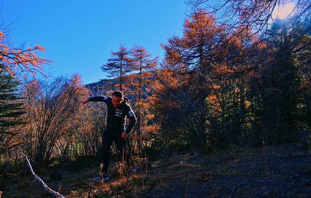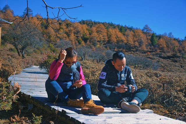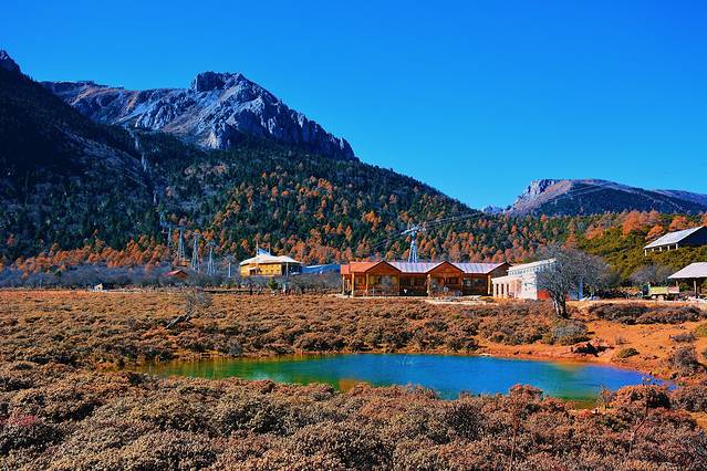 从石卡雪山山顶观赏完美景下山,如果风不太大还可以选择乘车或者徒步至灵犀湖下山。这次由于时间比较紧张,错过了这片美丽的湖泊。不过也正因为错过,才有了第二次再来的冲动。欣赏完灵犀湖,可以一直继续沿路走抵达亚拉青波牧场,然后搭乘索道下山底。亚拉青波牧场上有一小片湖泊,也是千万不可错过的。在这片湖泊上,因背靠雪山,丛林间还有橙色发亮的植被,再加上碧绿的湖泊,可以拍摄出非常优美的照片。