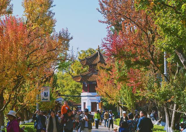 翠湖公园相当于是多片小湖聚集联合起来的环湖公园,里面能看到海鸥(数量没有滇池多和集中),还有不乏红叶的身影以及昆明的传统文化建筑。位于翠湖公园附近的五华也是一个不可错过的感受老昆明人生活的地方,可以顺路探访下。云南大学也离翠湖公园不远,步行15-20分钟可以到达。云南大学的11月,已经悄然换上了黄色的新装,也成为了众多游客赏银杏的好去处。找个闲暇的午后,到云南大学的校道小路走一走,也不失为最佳的昆明旅游体验方式。