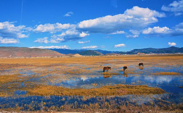 蓝月山谷驱车5-10分钟,便抵达了纳帕海。两个景区之间距离非常近,可以规划起来一起浏览。在纳帕海,你不需要特意去寻找景点,因为只要下车,静静地待在湖边发呆,我觉得就已经足够了。整个湖面环湖距离还是比较长,不同角度的湖面也呈现出不一样的颜色,时而有鸟儿飞过,时而有云朵飘过,时而有牦牛走过,纳帕海的景色,还是非常丰富多彩的,值得你走走停停散散心。