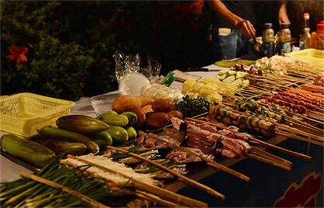 当当当,敲黑板,划重点啦朋友们,吃烧烤的最佳地方:江边夜市!参考价格:人均消费50元左右。强烈举手大声说:烧烤一定要尝试,因为和我们北方的烧烤有很大的不同。有的直接在炭火上烤、有的用芭蕉叶包着烤、有的放入竹筒中烤,不同的烤法不同的口感,再配上不同的蘸料,哇哦,回味无穷!