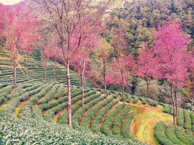 你大概也没法在其他地方看到如同无量山冬樱这般胜景,海拔约2175米,面积约2000亩。每年11月底或12月初,间植在茶园中的冬樱花竞相开放,构成一幅无量山樱花谷人间仙境画面。