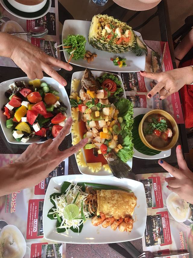 下午回来玩到精疲力尽,回酒店洗澡,然后出去吃晚餐😀在大众点评上看了一家人气排名的网红饭店,走路过去,叫Doo Dee Thai Food,人气爆火,在街口有两个店都坐满了人,推荐菜咖喱蟹、泰国风味的意面、烧烤类,鱼类很难吃,再一次验证了泰国鱼做的都不咋滴😂
