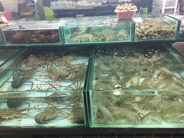 班赞市场其实就是一个农贸市场,里面海鲜、水果、蔬菜、干果什么都有,一楼是卖海鲜的,要上午去吃,下午一般就没有了,晚上在外面有大排挡,不过基本是死的不新鲜,上午买的都是活的!买完去二楼加工,一共就5家,其实差不多!