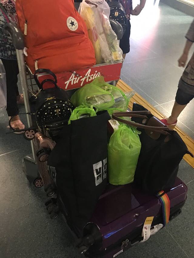 没入关取化妆品时已经是这个状态,两个大箱子,还有那些个小包😂