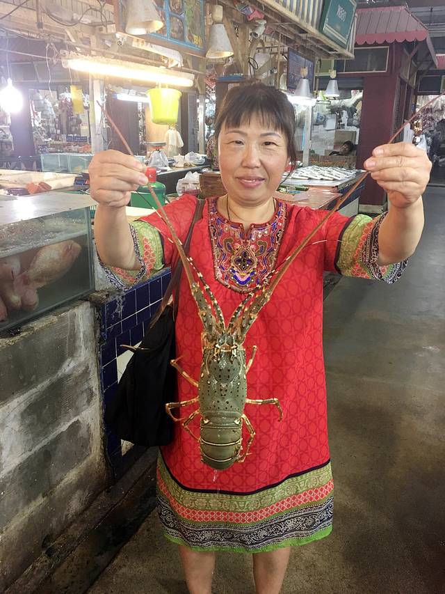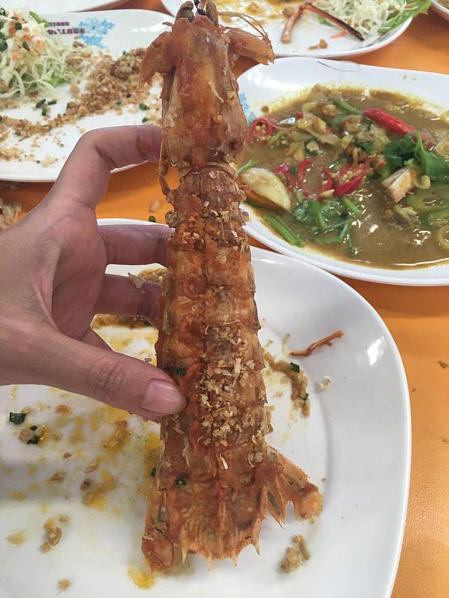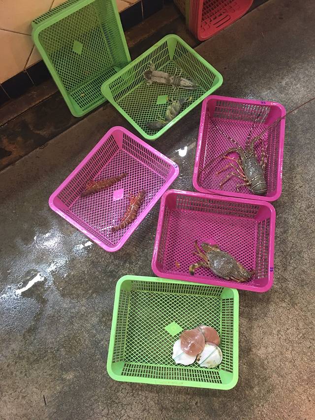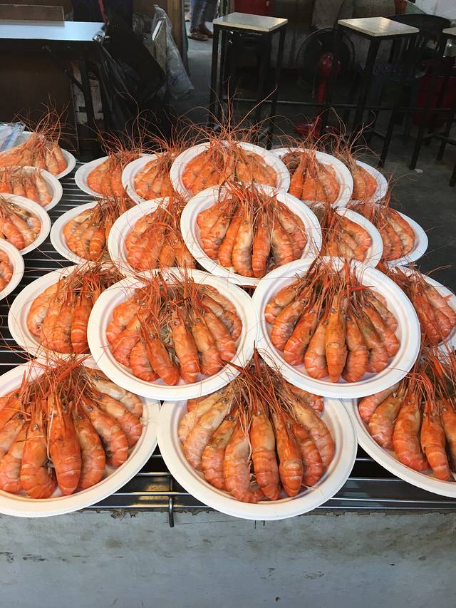 走一圈货比三家就知道价钱了,一定记得杀价,班赞市场里的人中文不要太好,你就直接对话就可以,最后挑了一只龙虾、一只螃蟹、两只巨大皮皮虾、两只老虎虾、四只扇贝,要价2800+🐷,我直接给1500🐷,老板夸张的表情,说不可以让我加钱,我也不愿意再墨迹,直接说1600🐷,老板说看我漂亮一口同意😂,不过价格也差不多。直接到二楼加工,找了一家婆婆,海鲜是称重加工,最后赠送我一盘空心菜外加米饭400🐷