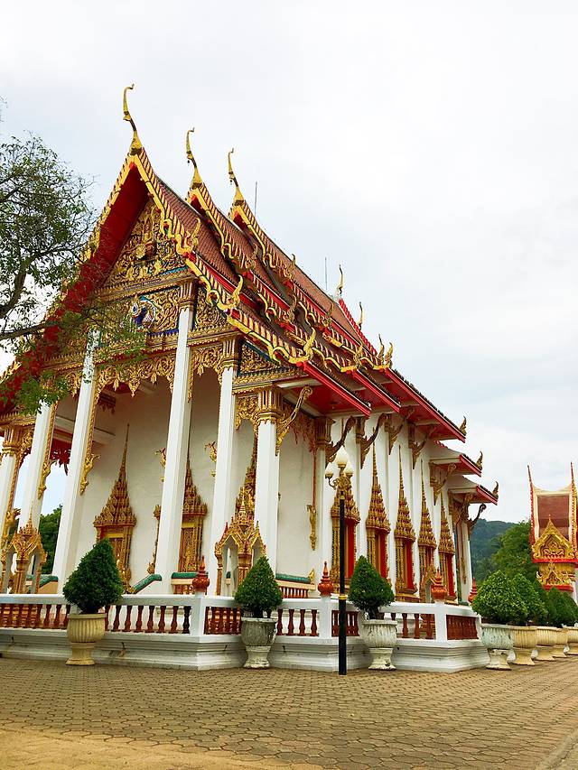 泰国是一个佛教文化国家,既然来了肯定要去寺庙看看,普吉的查龙寺是普吉最大的寺庙,香火旺盛,本地人有好多来拍结婚照的!进寺庙不能穿着暴露,进入庙内要光脚!