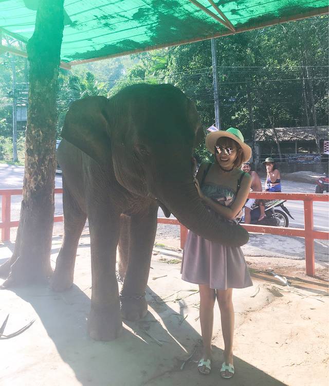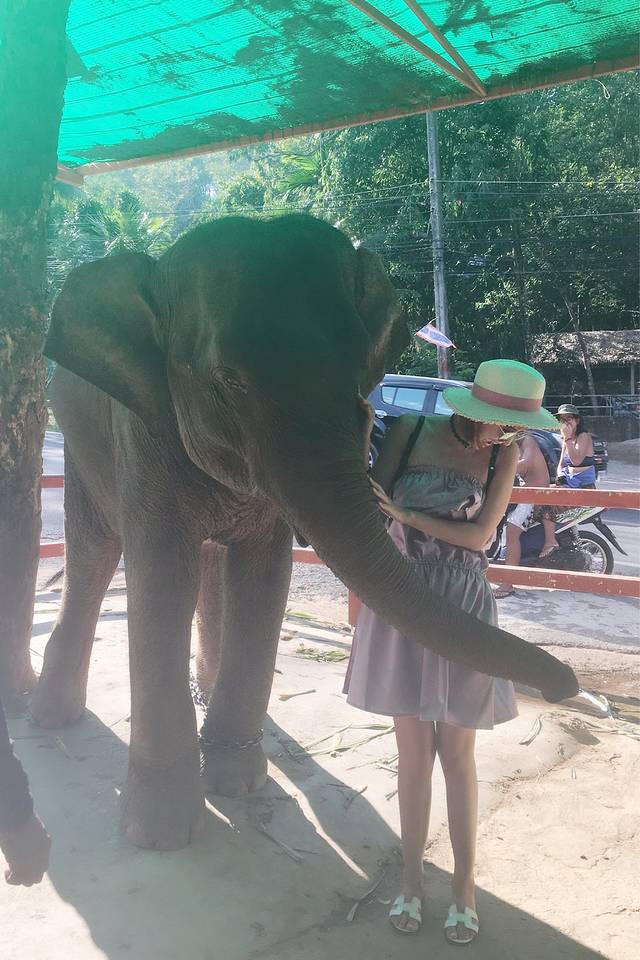 出来和喂小象,和他合影时他调皮的用鼻子钩我包包
