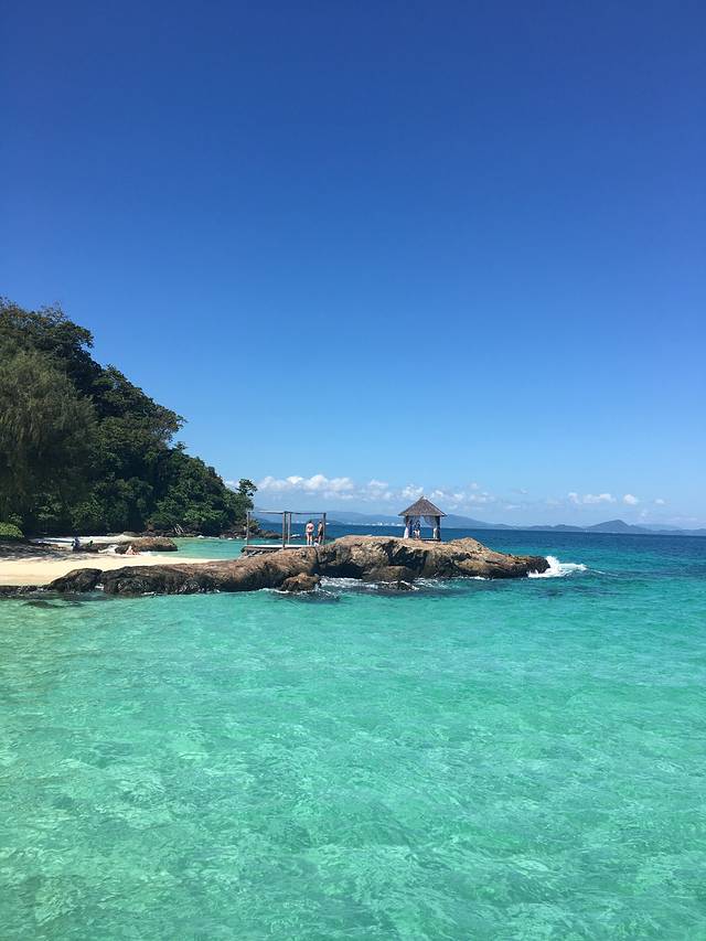 今天订的蜜月岛一日游,吃饱饭就在酒店等车来接我们,车来的比预定时间晚了一些,由于大雨有些堵车!据说发生交通意外,等了一会其他人,出海时间晚了1个小时,不过回程延后✌🏻