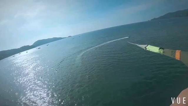吃饱喝足准备去海滩玩拖伞,海滩的拖伞还是比海岛上要贵一些,但他不会弄湿你的衣服,砍价到500RMB/2人,大概也就5分钟左右吧,不过确实好玩