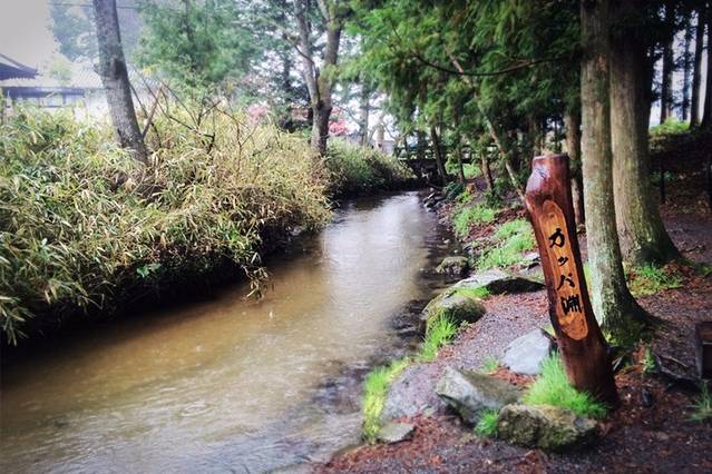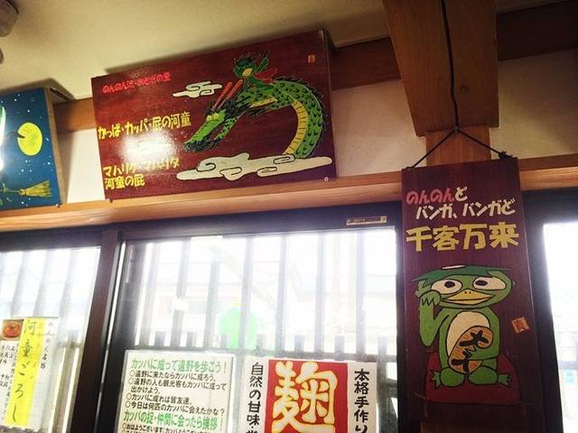 河童渊,传说这里曾经住着许多河童,经常會出来调皮捣蛋惊吓人们。河童最爱吃小黄瓜,所以只要在钓竿上绑上小黄瓜说不定有可能钓到河童哦!如果想在这里钓河童,需要先在附近的传承园(就是下车那块)买一张许可证==。