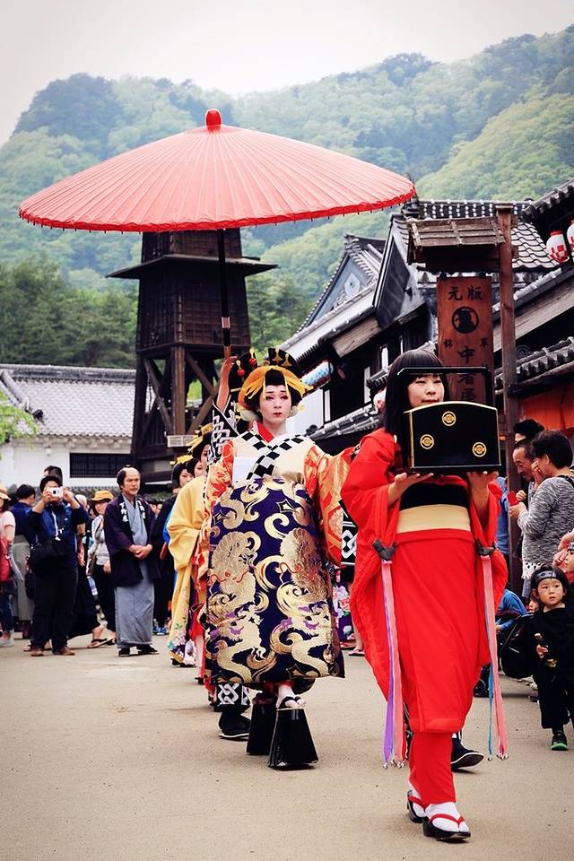 其他演出一天都有多次,唯独花魁巡街一天只有一次,14:00开始,持续十几二十分钟。我这趟班车到达江户村是13:50。我滴妈呀,狂奔着去买票,再狂奔去表演地点,终于还是赶上了后半部分。