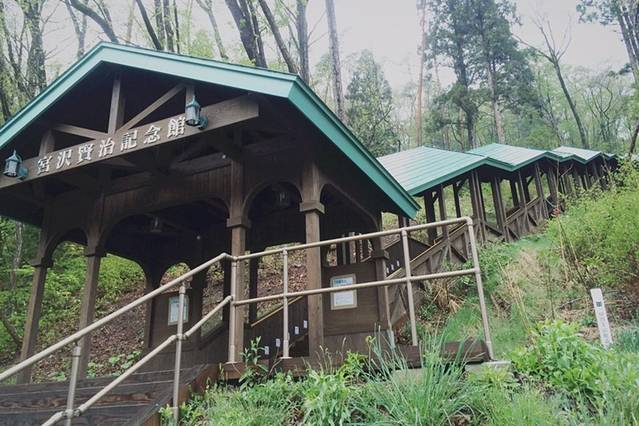 从童话村出来再往上坡走一点,道路另外一侧就是纪念馆,纪念馆的海拔比较高,要再攀登一段木阶,途中会经过餐厅山猫轩(也是宫泽童话中曾出现的)。