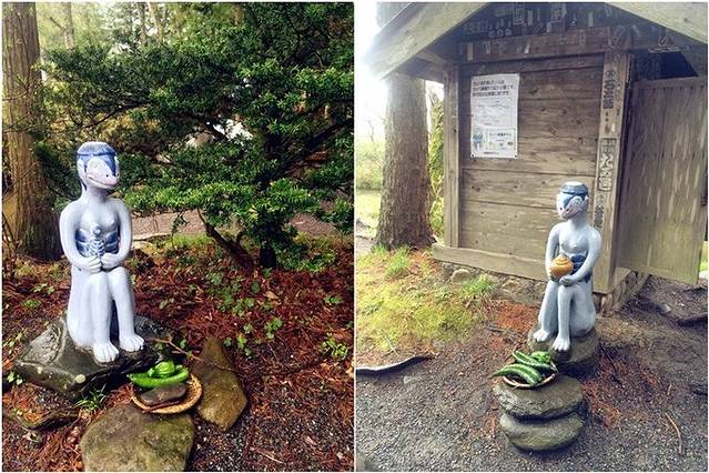 河边上还有一个河童神龛,供奉着翠儿绿翠儿绿的蔬菜