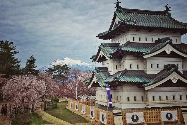 从青森搭JR列车到弘前只需要40分钟的时间,从车站搭乘公交很快就能到达弘前城。(弘南巴士土手街循环¥100巴士(¥100)市政府下车步行5min,或弘前站步行30min)