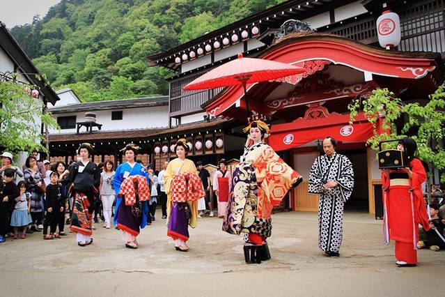 吃完饭一路下坡走到日光站,搭上免费巴士,半小时就到达江户村。这半小时也不会闲着,巴士上有江户村的地图和各种演出的时间表,可以根据自己的喜好筛选一下表演。