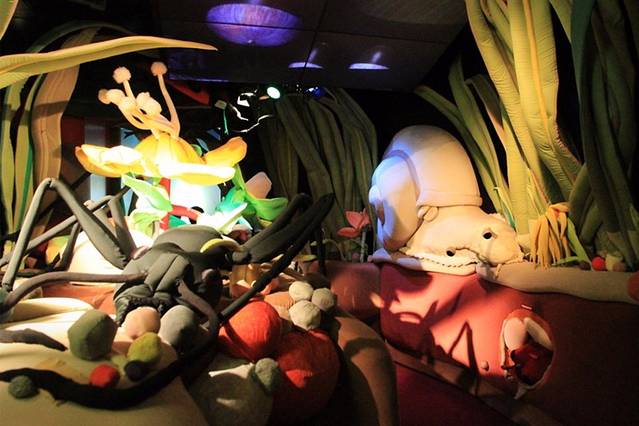妖精小径旁边是【贤治的学校】,学校外观就很特别,地上还有星座的图案。学校内部有几个展室,有的展室通体纯白,其中有棵大型银河树壁画;有的展室展示从蚂蚁的视角看到的动植物;有的展室就像一个绚烂的隧道。