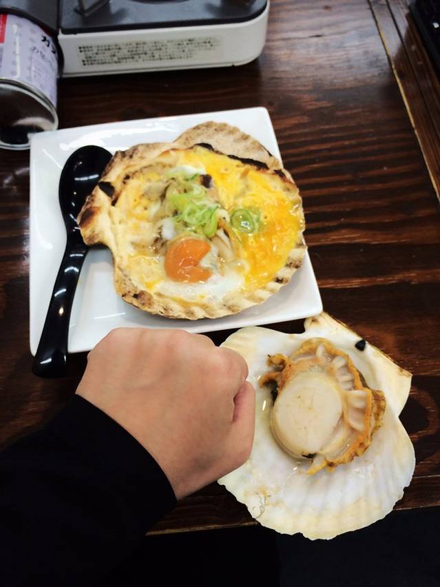 青森的扇贝真大,跟小拳头似的日本人还挺热情,「扇贝小屋」这家餐厅有个游戏,500日圆3分钟钓扇贝,钓多少吃多少,可自由在火炉上烧烤钓到的扇贝,也可让工作人员做成生鱼片或者寿司。没有钓到的也能拿到3个作为安慰奖。我隔壁桌的小情侣钓了十一二个,成了当天的冠军(门口有个牌子记录今日钓扇贝数量top5)。我的天哪(小岳岳状),他俩人看吃不完,还送了我一个,特别厚实,咬一口特别满足。另外我点了青森生姜关东煮(这种下雨的冷天吃很舒服)和扇贝的稚贝汁。