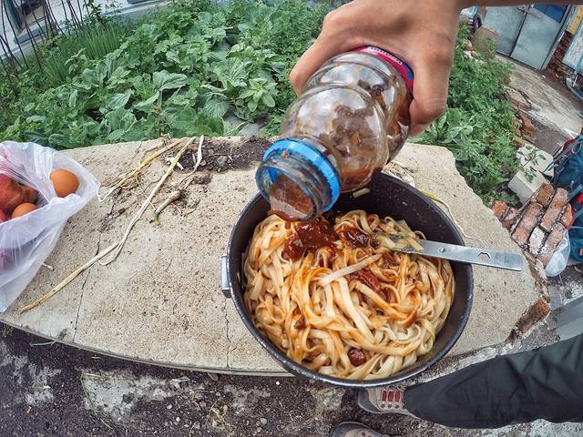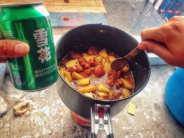 我们的旅行中没有奢华的酒店和丰盛的菜肴,但是在这样看似简朴的旅行方式中,这样的“大餐”不仅节省了开支(这顿饭所有食材的成本也不过20元钱),还总能发现别样的乐趣,而我们也确实享受其中。