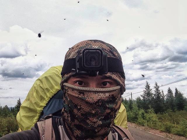 进入大兴安岭的腹地后,徒步继续行进。之前查阅有关大兴安岭的资料描述说,到了夏季苍蝇蚊虫极多,但是没有想到会是如此之多,它们好似一团阴云将人笼罩其中,如果停留在一处不动,会有更多的虫子聚集过来,能见度都会下降。似乎也没有什么对应的好办法,如果人在前面跑,头顶比作山峰的话,那群虫子就是那飘动的旗云,挥之不去。只好蒙住嘴脸,忍受着巨大的“嗡嗡”声响。