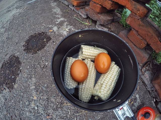 第二天路餐准备的煮苞米与鸡蛋。