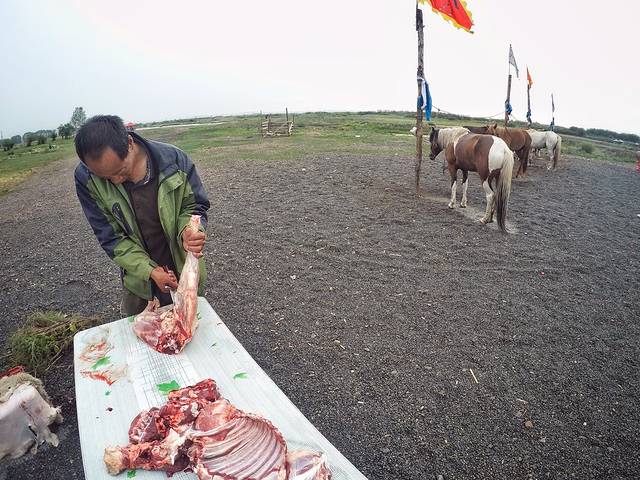 次日一早,昨夜的酒精依旧奔腾在血液之中,揉着睡意朦胧的双眼,就听包外撕心裂肺的惨叫声,跑出去一看,原来是从四哥手中揪着的一只即将结束短暂生命的羊嘴中发出的,新的一天是从这样血腥场面中开始的。