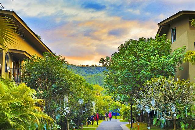 走进南昆山居温泉度假村,小朋友看到圣诞节的装饰,开心说:快看圣诞树。在度假村阔气的大堂,热情的服务员,速度为我们办理好入住手续,叫来了电瓶车,把我们送到了房间门口,虽说距离很近,这样的服务心里感觉暖暖的。我们入住的亲子别墅,东南亚风情五星级品牌的度假酒店风格,打开绿树掩映的房门,开始了我们温馨的假日生活。