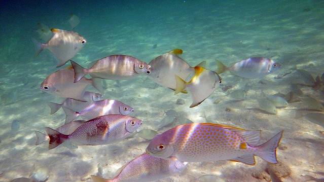 对了,如果想看着鱼儿围绕这你转的话,可以拿个矿泉水瓶装上面包碎或者饼干碎,一放下去好多鱼儿都会来找你哦。